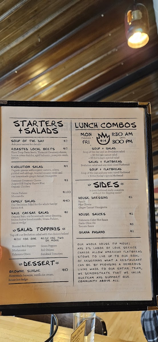 The menu doesn’t just stop at flatbreads - you’ll also find hearty salads, fresh appetizers, and seasonal specials that make the most of Vermont’s finest produce. The atmosphere here is warm and inviting, perfect for a casual night out or a special gathering with friends and family. The drink menu is equally impressive, offering everything from local craft beers to delicious wines, making it the perfect pairing for any meal.